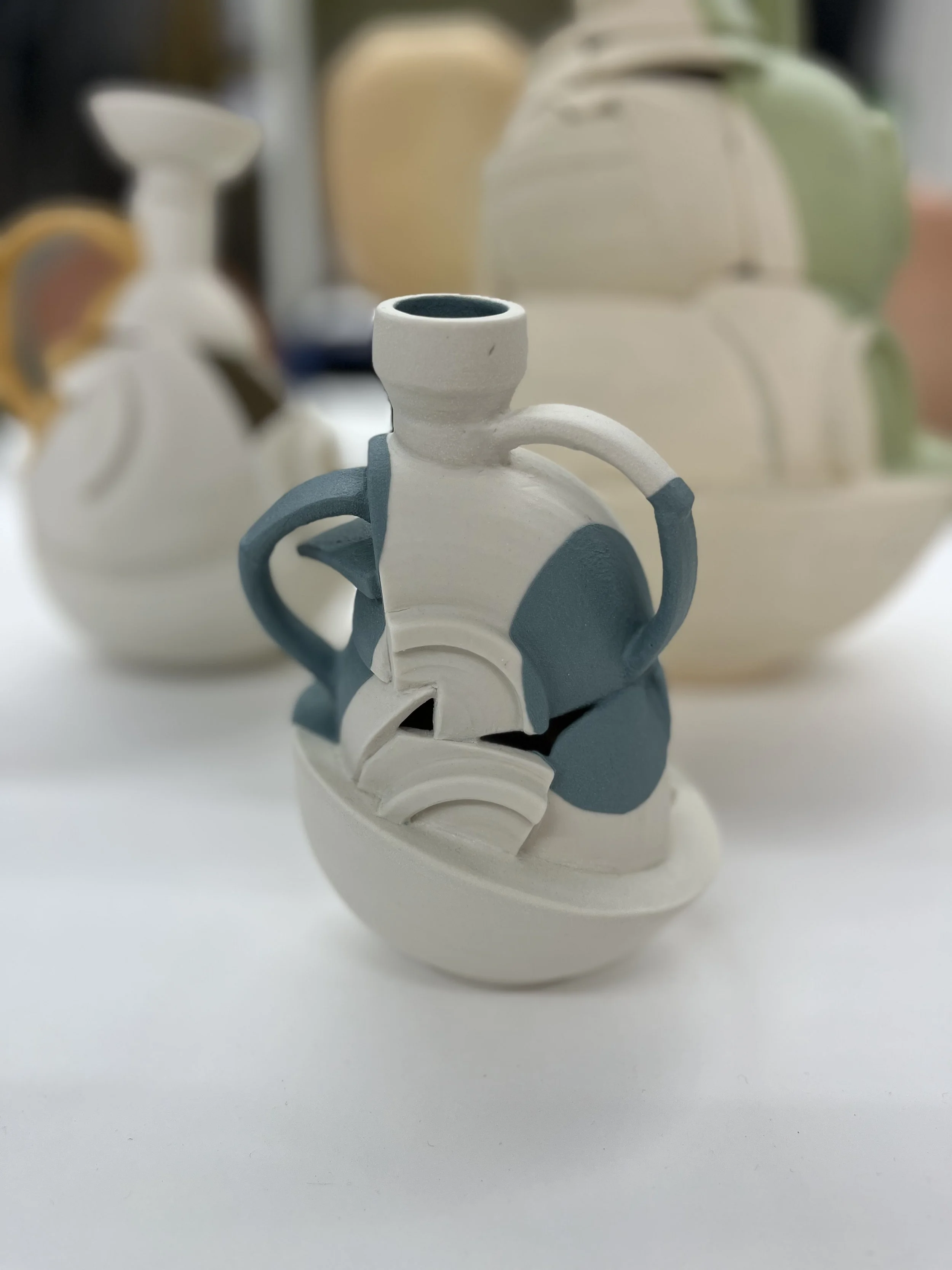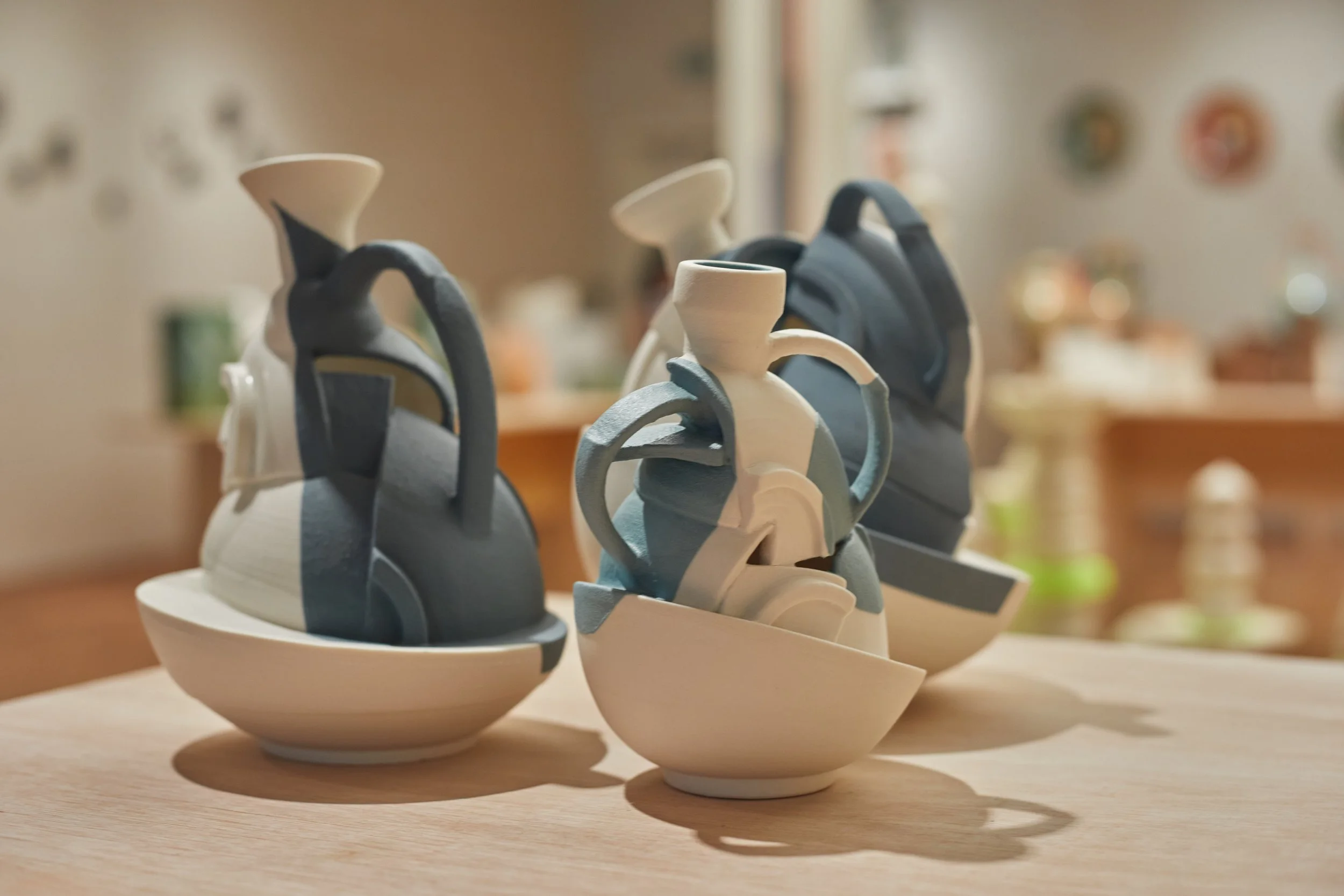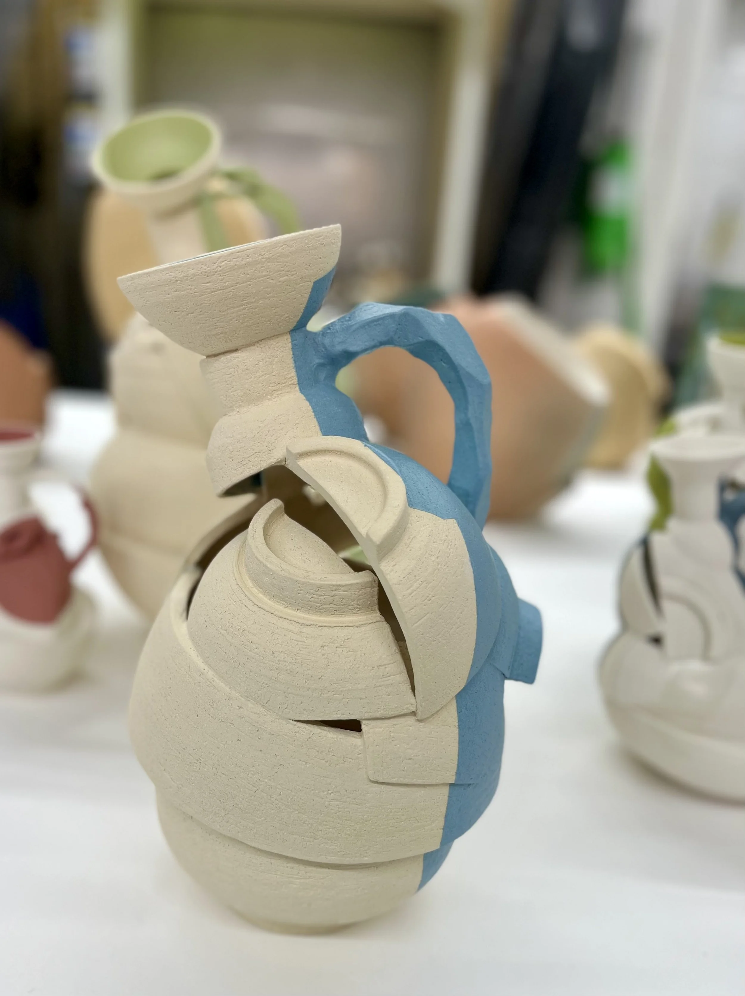 "I begin by throwing clay on the wheel, then cut and reassemble the forms by hand, letting imperfection guide the process. Layered fragments create vessels that speak of fragility and strength, much like our lives, bearing the visible marks of their making. Influenced by breaking and repair, my work explores memory, resilience, life’s imperfections, and reflects the human condition."