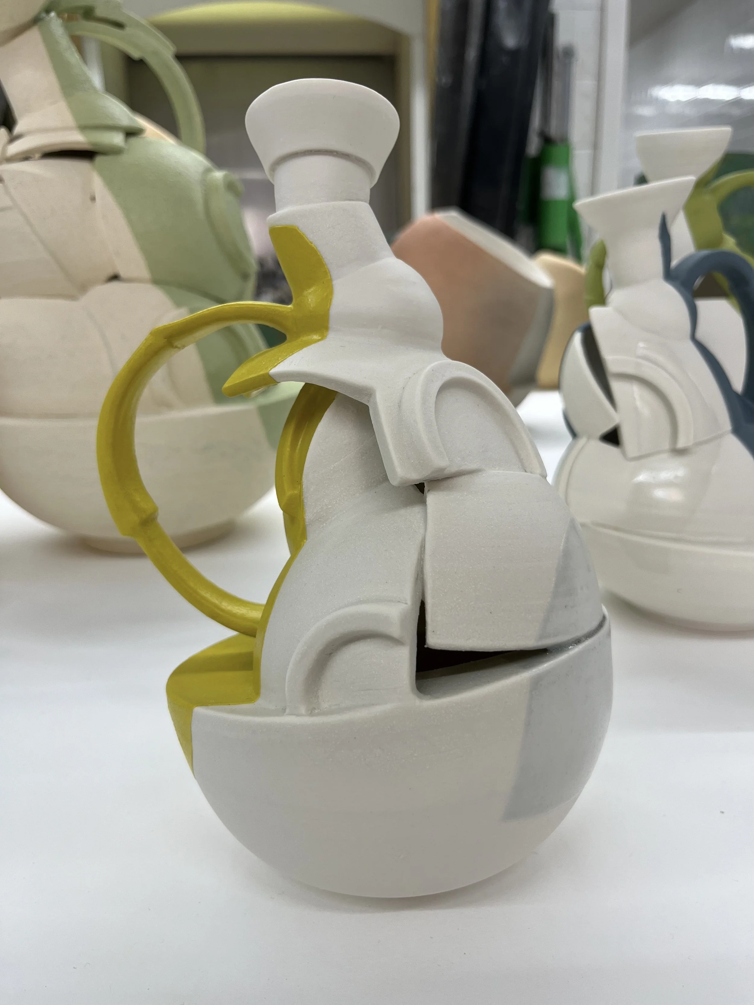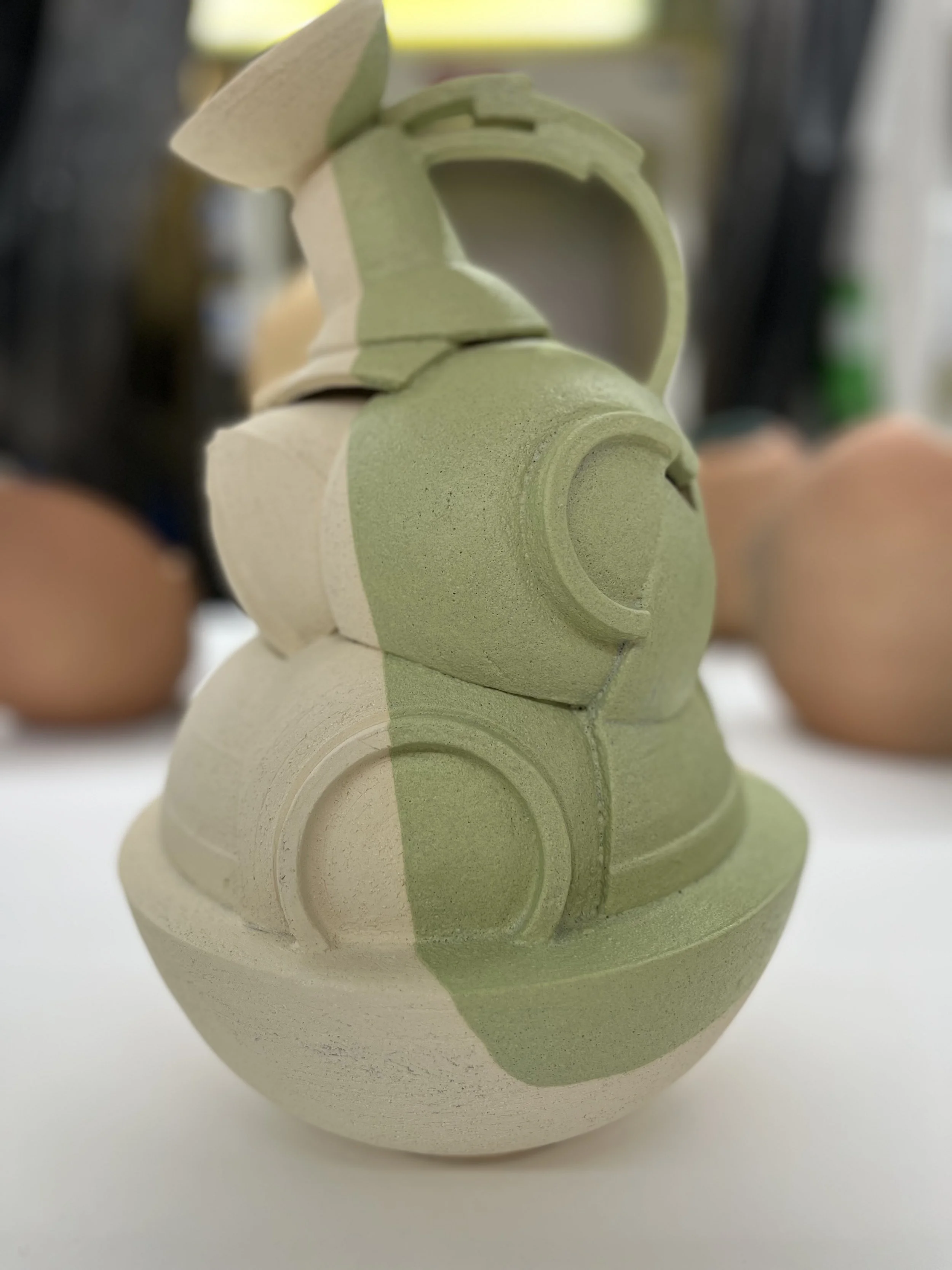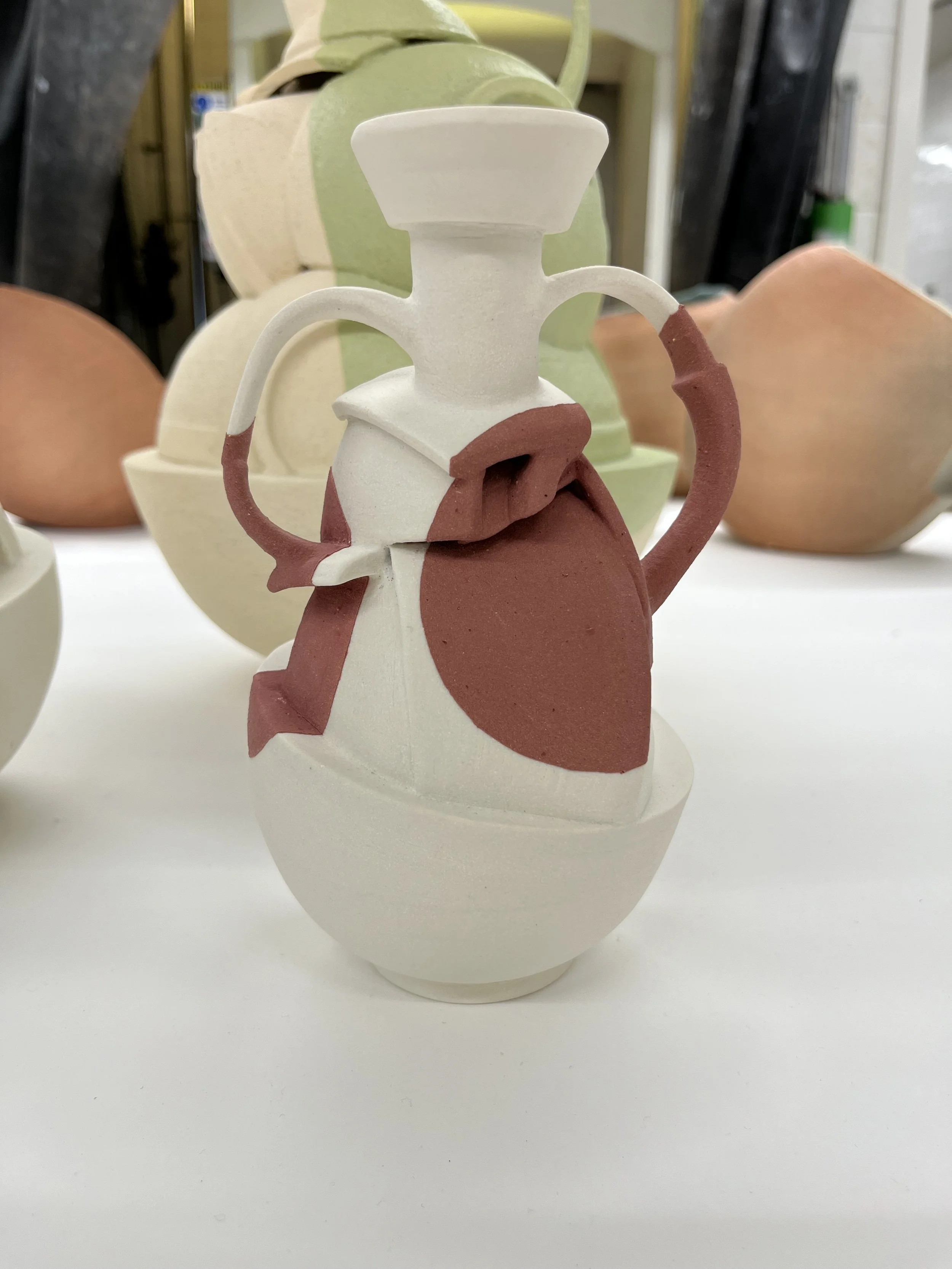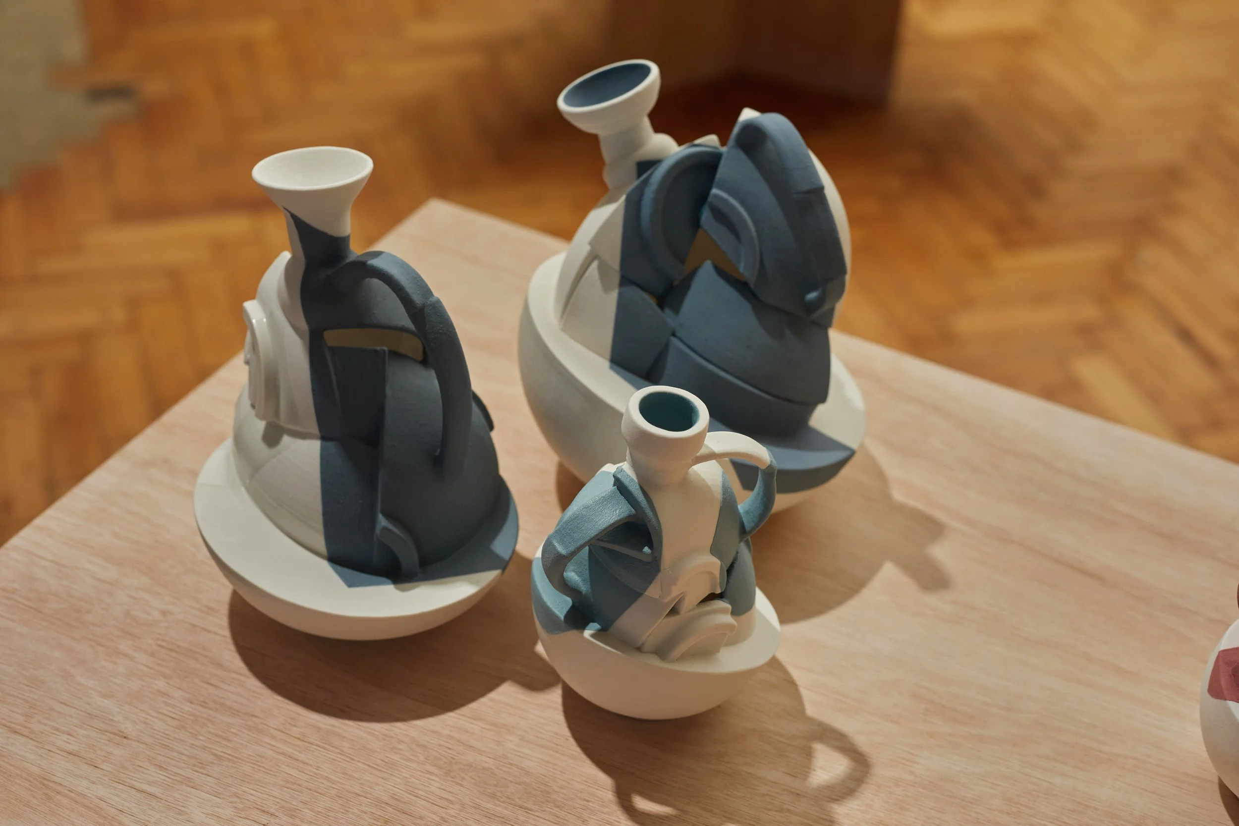 "I begin by throwing clay on the wheel, then cut and reassemble the forms by hand, letting imperfection guide the process. Layered fragments create vessels that speak of fragility and strength, much like our lives, bearing the visible marks of their making. Influenced by breaking and repair, my work explores memory, resilience, life’s imperfections, and reflects the human condition."